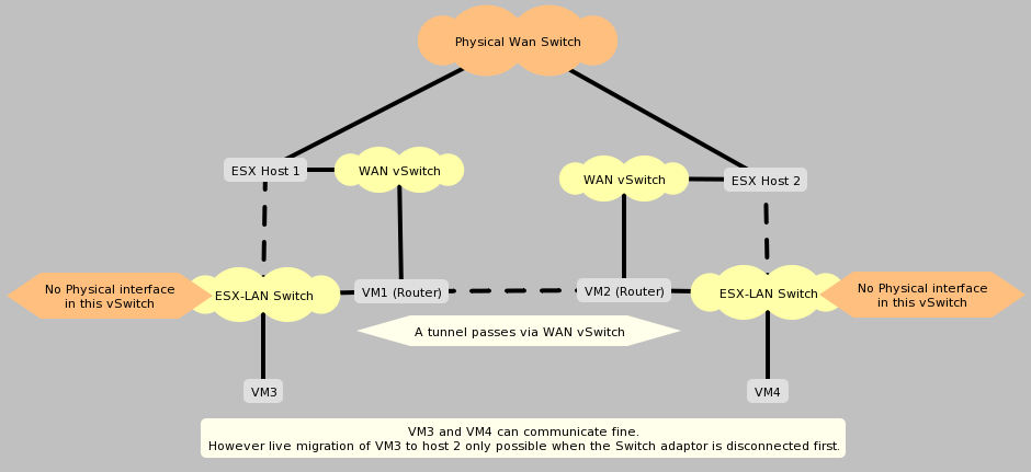 *There are a few cases in where you would want a physical interface connected, purely so vMotion believes it can migrate hosts (because otherwise it doesn’t think the 2 virtual switches are connected).